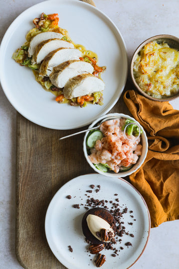 A warm chocolate fondant topped with a maple cream & candied pecans