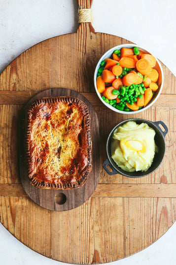 Our award winning pie (Glenarm beef and Irish ale or Irish chicken and ham hock) with glazed carrots & peas