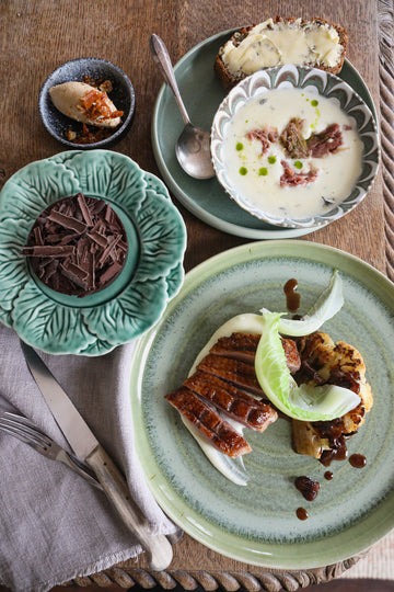 Crispy roast breast of barbary duck with caramelised cauliflower and a rich sherry and raisin sauce. Served with a creamy potato dauphinoise.